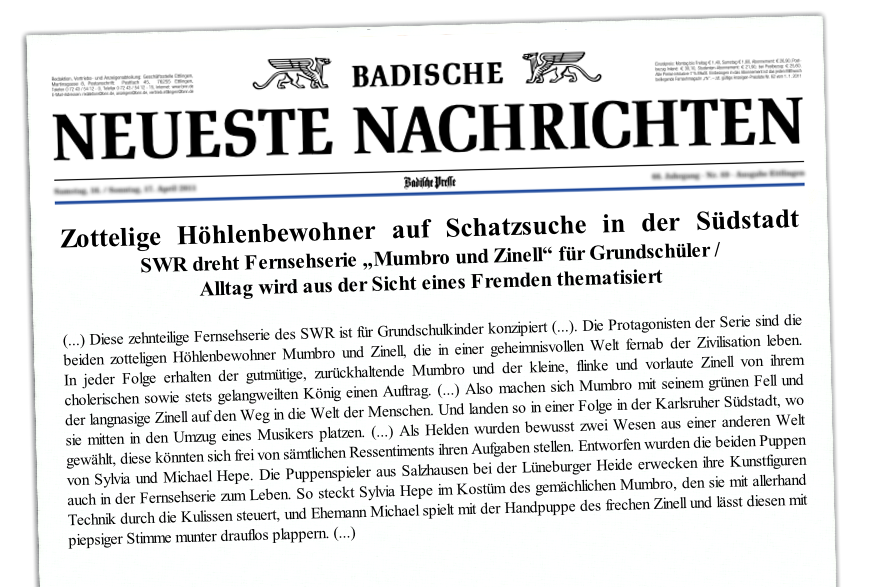 Seminare Kontakt Home Impressum Seminare Kontakt Über uns Ueber Uns Zur Inszenierung Zur Inszenierung Zur Inszenierung Zur Inszenierung Zur Inszenierung Zur Inszenierung Zur Inszenierung Zur Inszenierung Zur Inszenierung Zur Inszenierung Film Bühne Werkstatt Buehne Werkstatt Film Bühne & Werkstatt Eine kleine Auswahl weiterer Referenzen:  „Le Petit Gnome“ („Der kleine Gnom“) - SWR  „7 Zwerge II, Der Wald ist nicht genug“ - Zipfelmützen Produktion  „Siebenstein“ - ZDF  „Mumbro und Zinell“ - SWR Neben Gastauftritten in Werbefilmen haben wir auch als Spieler, Ausstatter und teilweise sogar als Drehbuchautoren an diversen Fernsehserien und Kinofilmen mitgearbeitet ... Mehr Infos zu Mumbro und Zinell gibt es hier: Planet Schule.